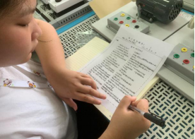 2021.09.11新学期第一课,1953班中级工实训(黄珏、姚丽丽),1751班高级工(电子)(唐玲、庄明华),1752班高级工(PLC)(沈正寒、姜子重),各实训教师进行安全教育、实训室规章制度的学习并组织学生进行安全测试。