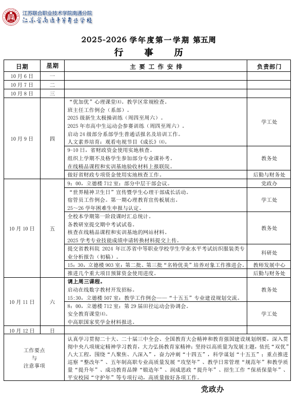 南通中专行事历(第5周)