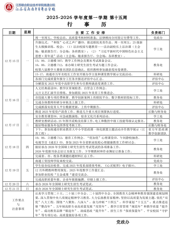 南通中专行事历(第15周)